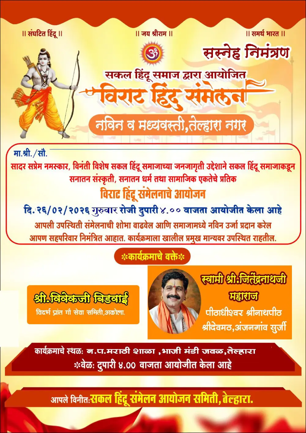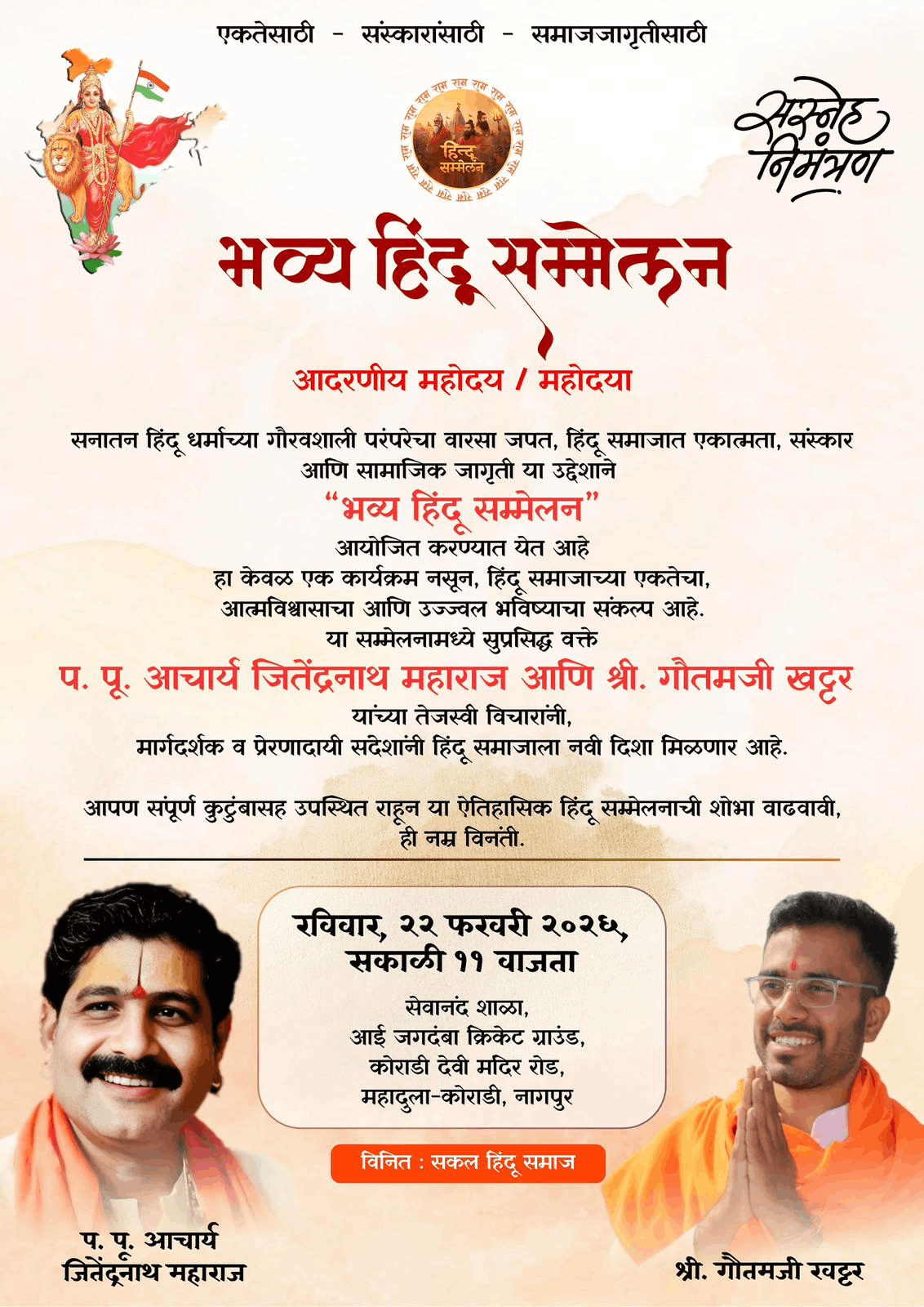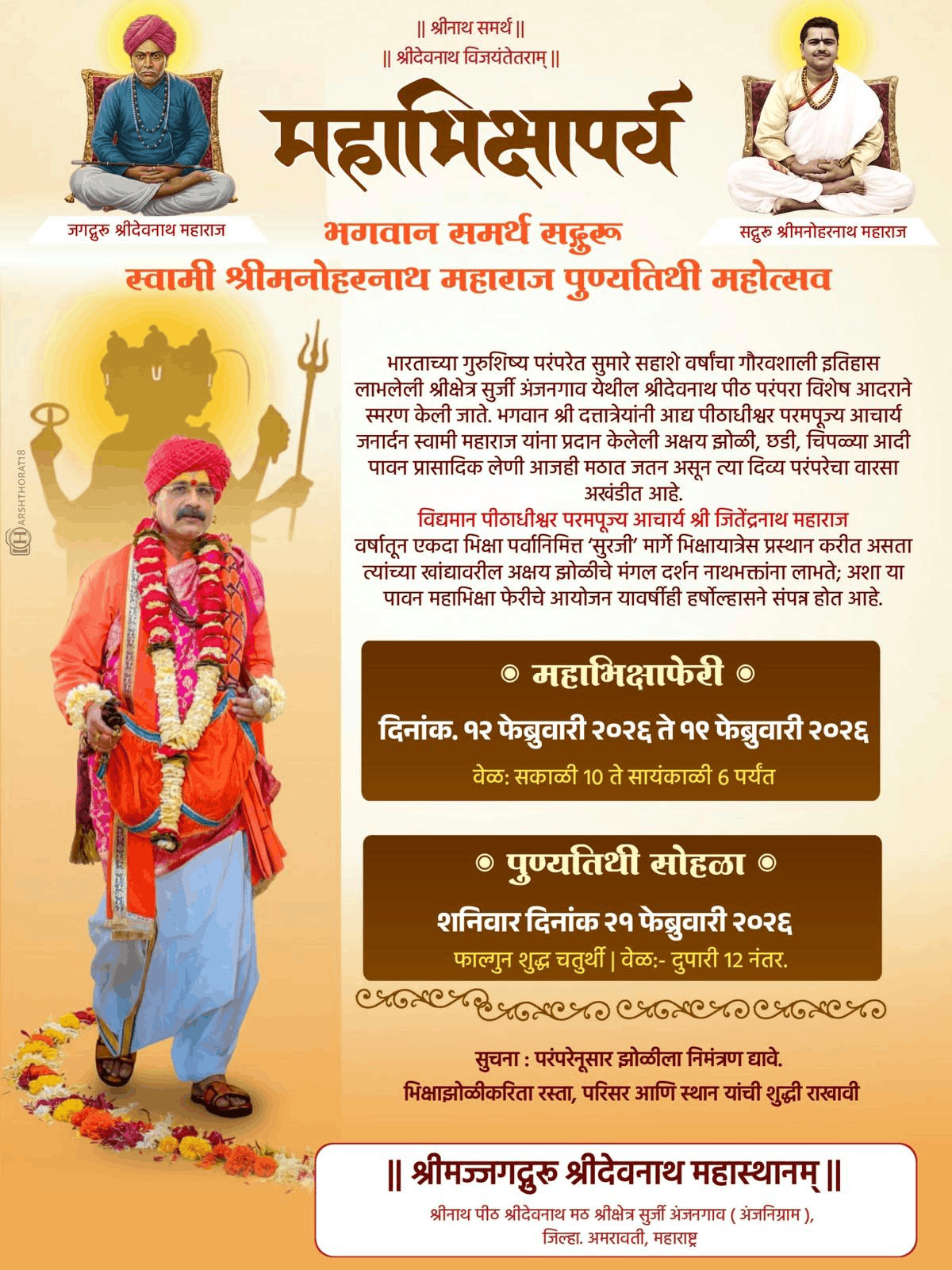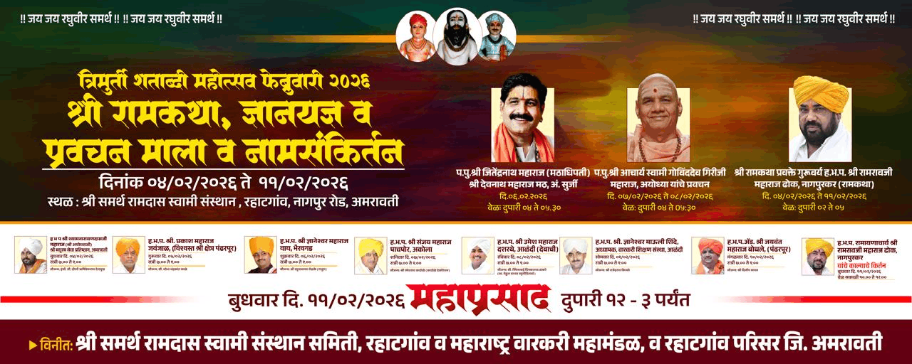 सत्संग वर्ष २४ वे | प.पु.श्री संत अच्युत महाराज सत्संग मंडळ, नवी मुंबई, हावरे प्राॅपर्टीज व महाराष्ट्र सेवा संघ, मुलुंड शाखा, ऐरोली यांच्या संयुक्त विद्यमाने “श्रीमद् भागवत ज्ञानयज्ञ सप्ताह” दिनांक २५ मे ते १ जून २०२५ या कालावधीत आयोजित! | प.पु. आचार्य स्वामी श्री जितेंद्रनाथजी महाराज यांचे प्रासादिक वाणीमधून सप्ताहाचे मार्गदर्शन! | बाहेरगावाहून येणाऱ्या गुरु भक्तांसाठी निवासी व्यवस्था पूर्वीप्रमाणे हॉलवरच | सर्व भाविकांनी कार्यक्रमाचा लाभ घ्यावा ही विनंती